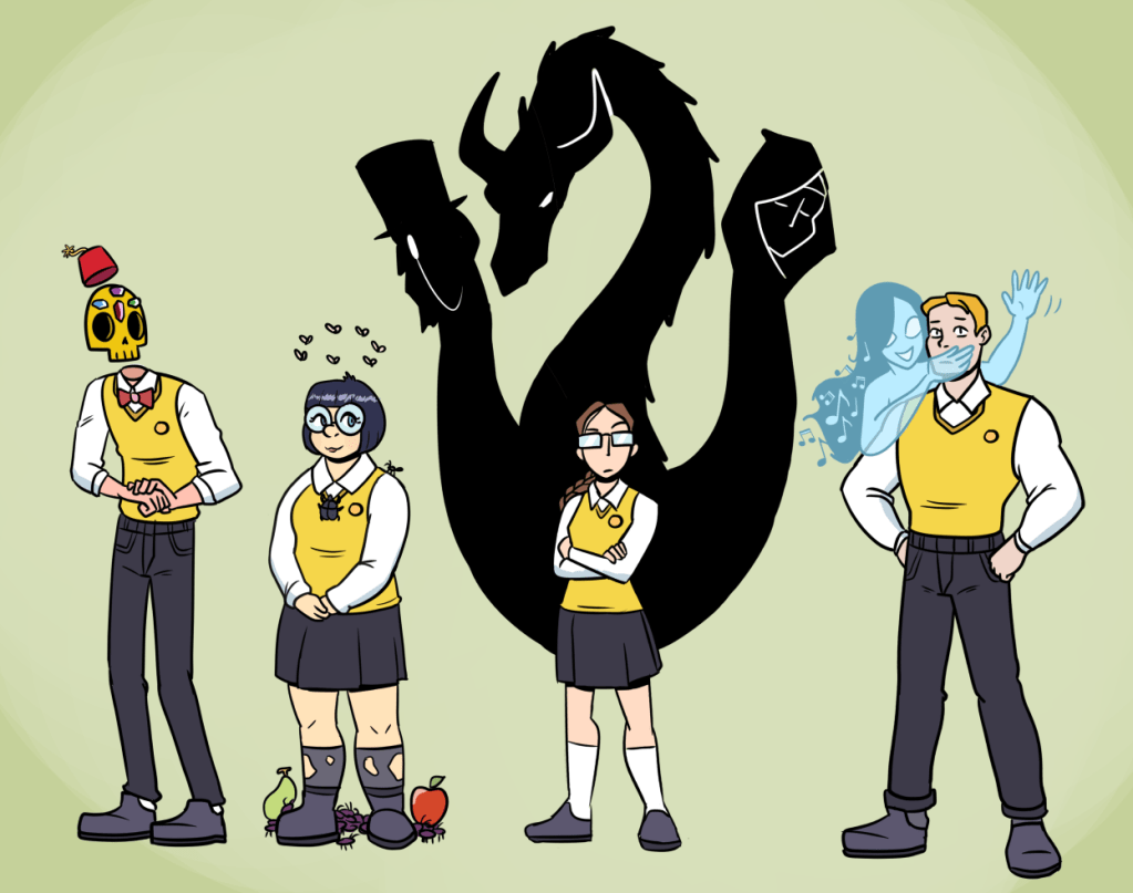 Left to Right: Charlie & Presto, Nora & The Assembly, Paisley & Miracle of the Pyre, Melody & Chad. Art commissioned from Tredlocity.